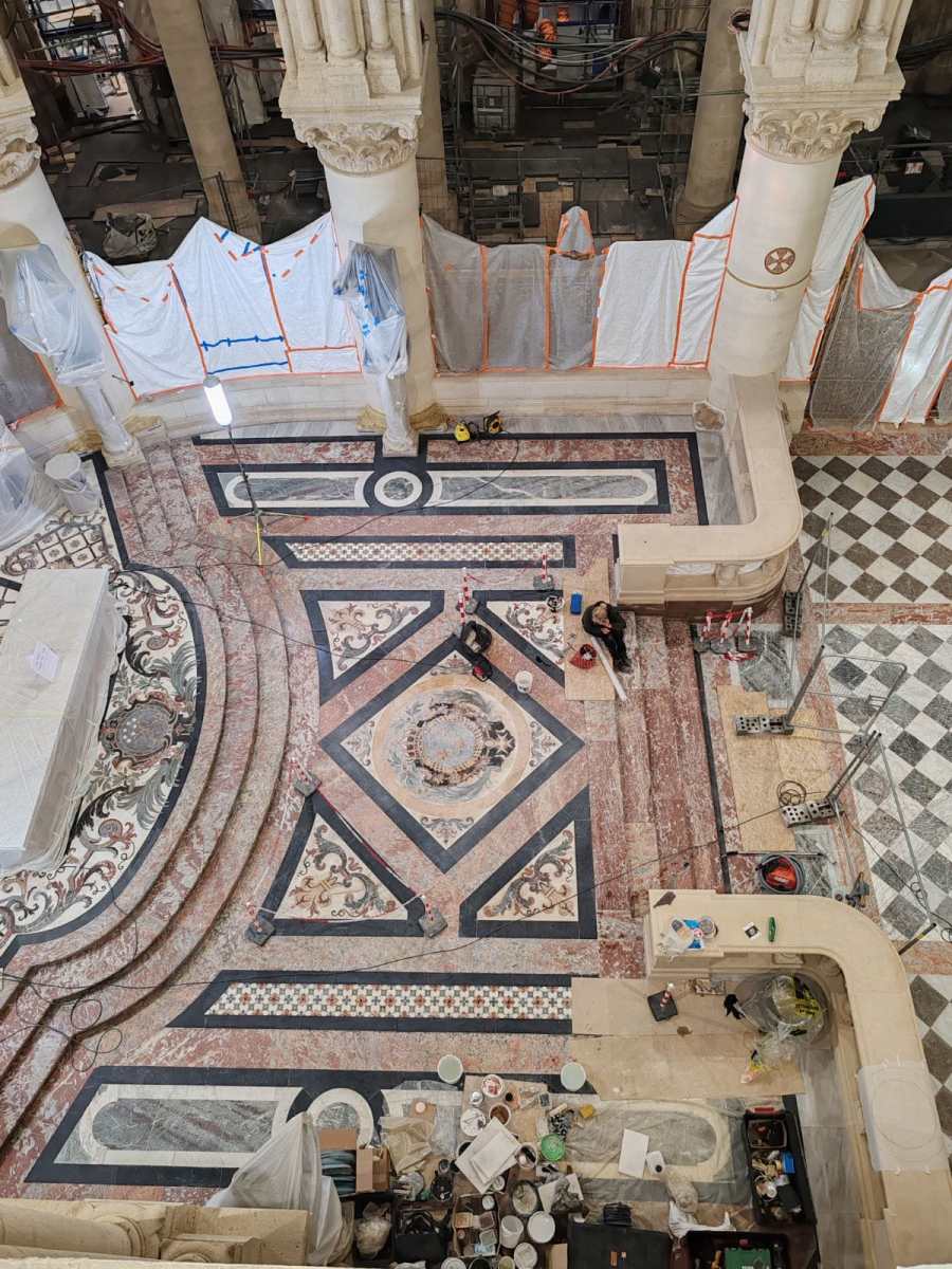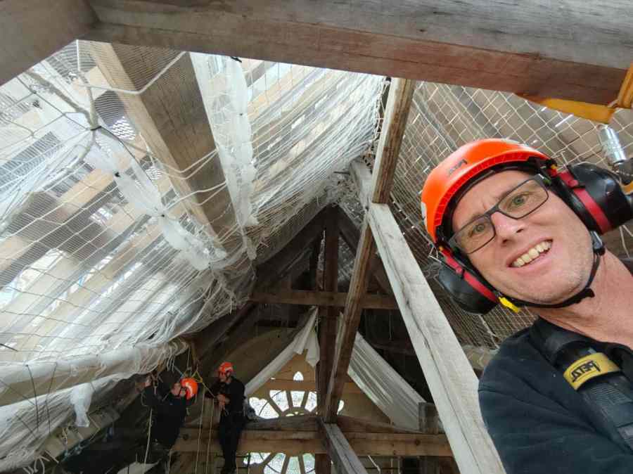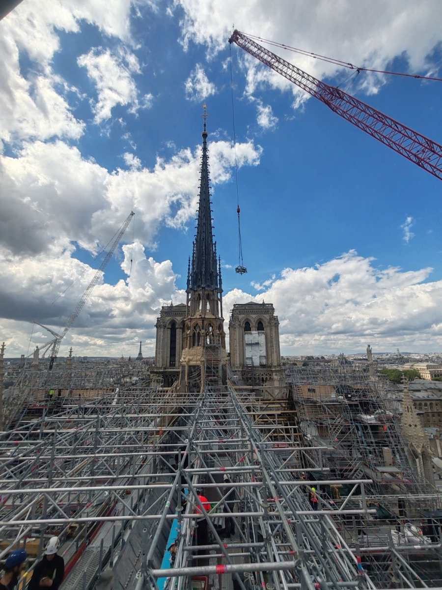 Sitôt quitté la fête de notre rue, Fabien, notre cordiste du 49, est sous la flèche de Notre Dame de Paris.